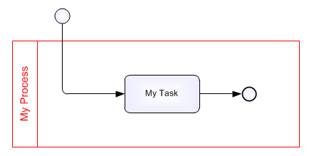 The new work is also xslt 2.0, using the same web infrastructure. Perhaps unlike the previous effort, here xslt is absolutely the right way to validate, because the artifact of interest is the XML itself. But here it's not about helping modelers create valid diagrams. It's really about helping tool vendors serialize BPMN properly. One of the tricky parts is linking the semantic model and the graphics information, which is in a separate block of XML. Each shape in the diagram (with location and size information) points to the id of a semantic element. Consider a simple diagram like this: