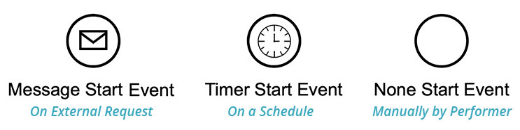 While the BPMN spec describes many different types of start events, in practice a process starts in one of only three ways: