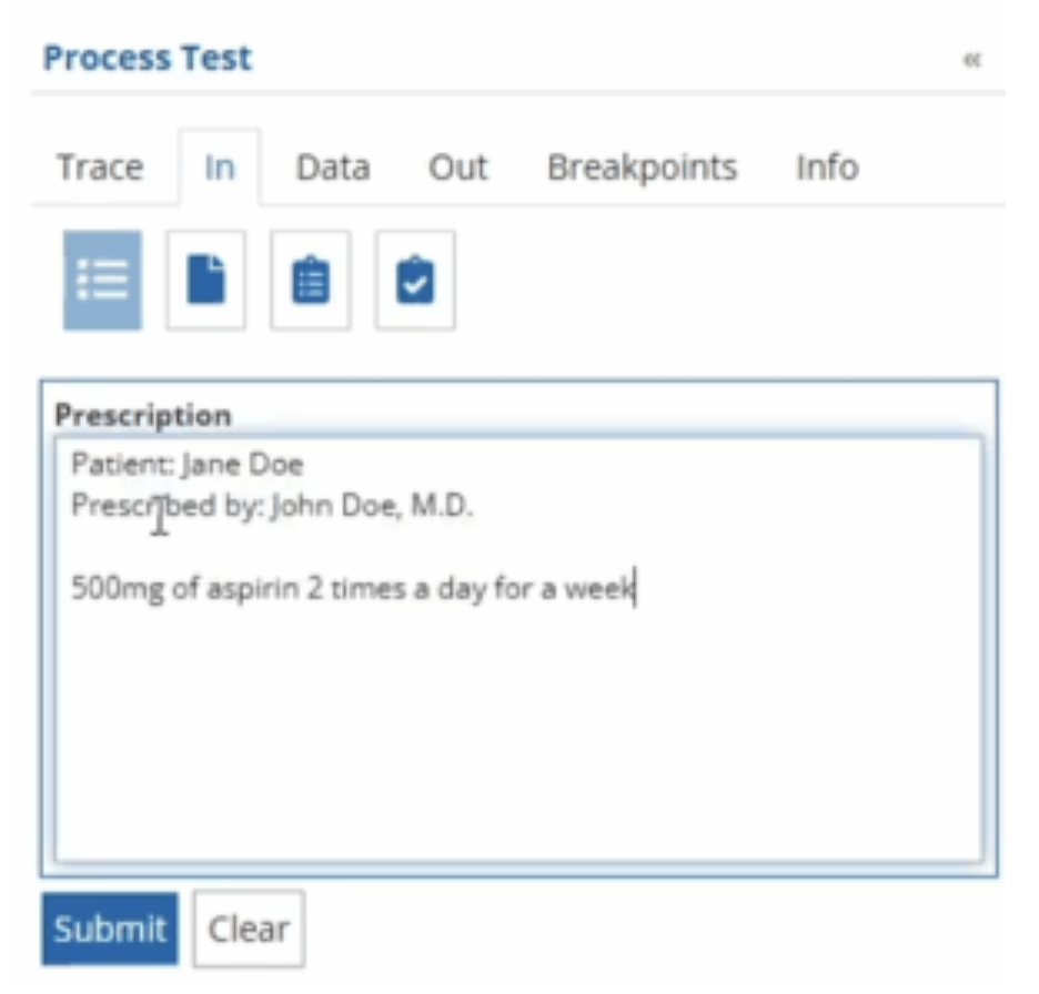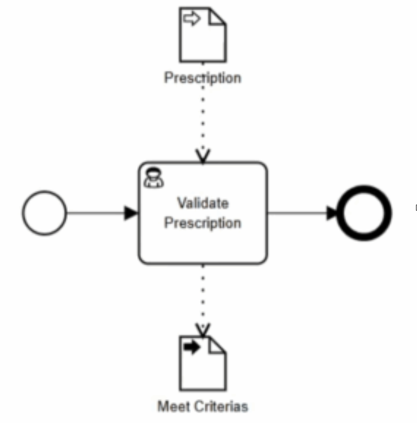 In this process a human task validates that a submitted prescription contains the required elements, again as specified in the task Description panel.