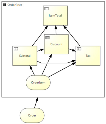 In DMN 1.1 with FEEL, iteration over a list or rows in a table requires using the for..in..return operator. For example, if an Order contains a list of Items, each with a Description, UnitPrice, and Quantity, the decision TotalPrice is expressed as follows:TotalPrice = sum(for i in Order return i.Quantity*i.UnitPrice)The dummy variable i stands for a row in the table Order, i.e. an Item. The for..in..return operator iterates Quantity*UnitPrice for each Item in the Order, and the sum() function adds those to get the total. Technical folks used to XPATH or XQuery might find this syntax straightforward, but it is not the most business-friendly. I propose the following equivalent notation using a new decision node type called a Multi-Instance Decision, or MID: