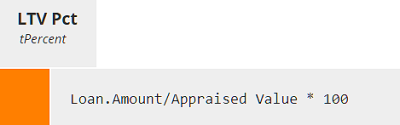 FEEL is called an expression language, a formula language like Excel formulas, as opposed to a programming language. FEEL just provides a formula for calculating an output value based on a set of input values. It does not create the output and input variables; the DRD does that. Referring back to our DRD, let's look at the value expression for LTV Pct, the Loan-to-Value ratio expressed as a percent. The FEEL expression looks like this: