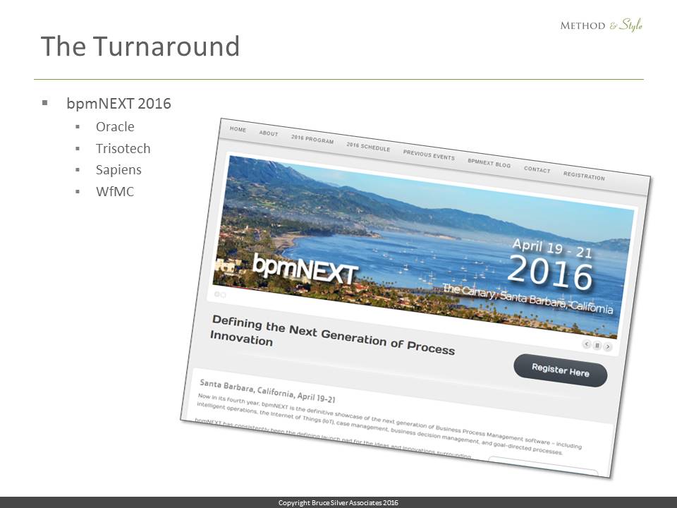 And that worked. With BPMN 2.0, what you model is what you execute. It transformed the BPM software industry. IBM for example, the number 1 vendor in that space, essentially walked away from its own BPEL based offering in favor of tiny BPMN-based acquisition. Suddenly you had startups offering new BPMN tools, new open source implementations. BPMN 2.0 utterly changed the industry landscape.