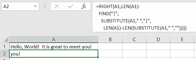 Right(A1,LEN(A1) - ... )) – Returns all characters after that |