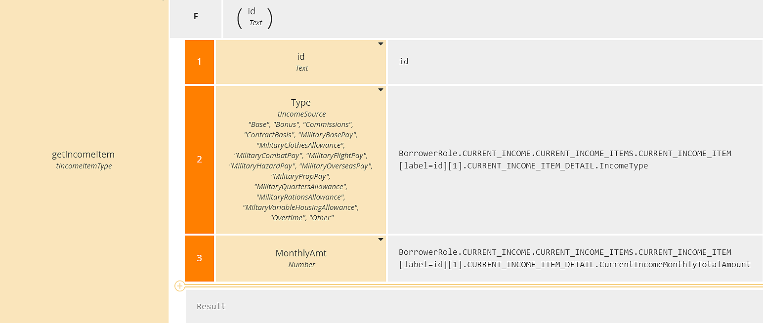To get the Borrower's current income, itemized by type (Base, Bonus, etc.), we need to create a join using MISMO's RELATIONSHIPS element. The join returns a list of income item ids for the Borrower's current employer: