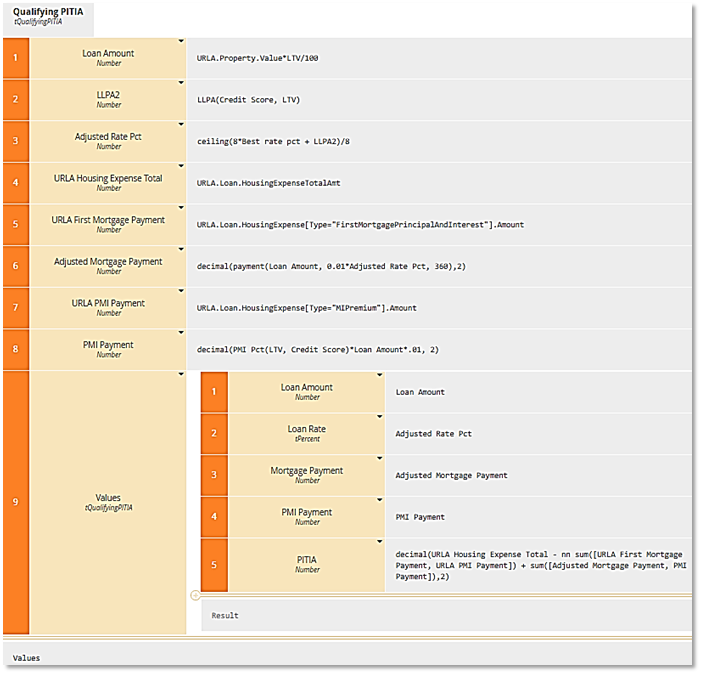 - A mapping of URLA data from MISMO XML format to a more DMN-friendly format. This could be created by a non-programmer using a third party graphical tool, or by a programmer as a reusable service.