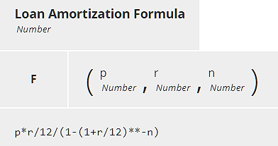 Decision my payment invokes this BKM using the lookup result my rate. Input data loan amount is just the borrower's requested amount, but the loan principal used in Loan Amortization Formula (parameter p) also includes the lender's points and fees. Since pointsPct and ratePct in our data table are expressed as percent, we need to divide by 100 to get their decimal value used in the BKM formula.