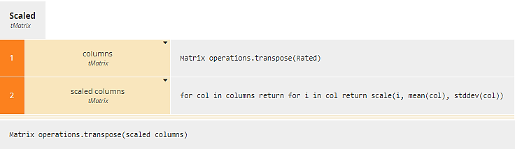 Figure 12. Scaled uses transpose twice to operate on columns of Rated