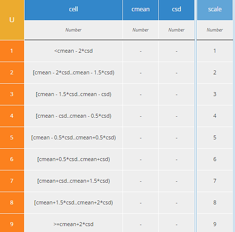 Decision Scaled is a departure from “official” TOPSIS in that it rescales the value of any Criterion to a range from 1 to 9 using the mean and standard deviation across all Alternatives. A value equal to the mean is assigned a rating of 5. A value 2 standard deviations higher is assigned a rating of 9, and a value 2 standard deviations lower is assigned a rating of 1. Values in between are interpolated and rounded to the nearest integer. Values beyond 2 standard deviations from the mean are clipped at 9 or 1.Scaled is a context that makes use of the matrix operation transpose. The first context entry columns transposes Rated, making it a list of columns. Context entry scaled columns iterates over that list, calling the BKM scale, with arguments the cell value, the column mean, and the column standard deviation. This is a simple decision table. The reason it has columns for the mean and standard deviation is that for a BKM, the parameters are specified by the input column names. Yes, stupid, I know. It’s in the spec. The final result box uses transpose again to put the matrix back in proper order.