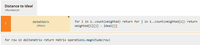 Figure 20. Distance to Ideal computes the difference vector between each row of Weighted and Ideal, then calculates the magnitude of that difference vector.
