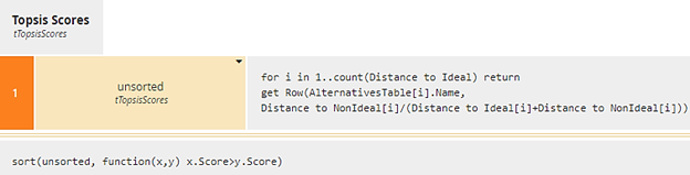 Figure 22. BKM get Row simply formats rows of Topsis Scores
