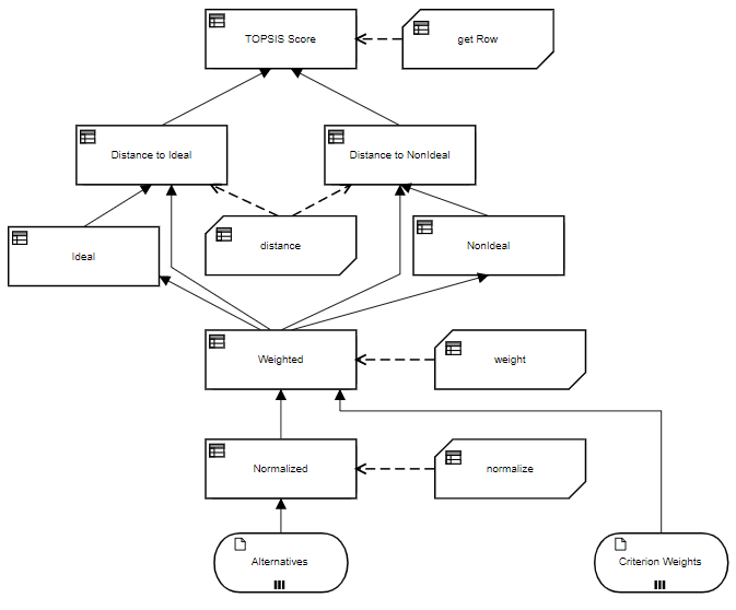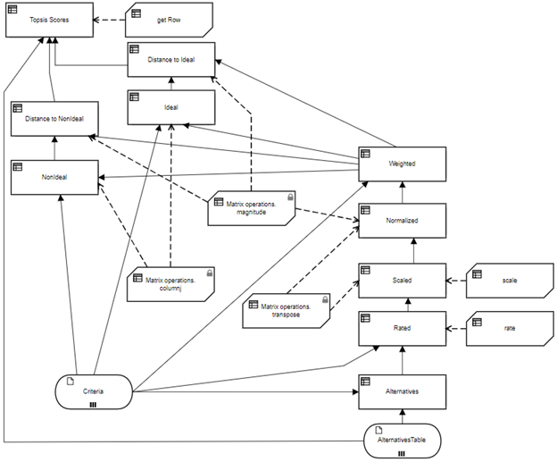 The DRD below illustrates the table implementation.Figure 5. DRD of TOPSIS table implementation