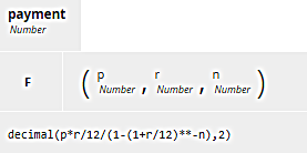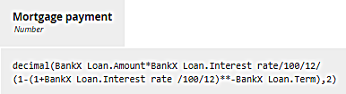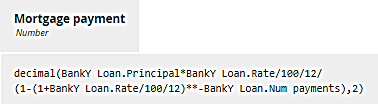 The decision Mortgage payment simply calculates the monthly payment based on those component values using the well-known amortization formula: